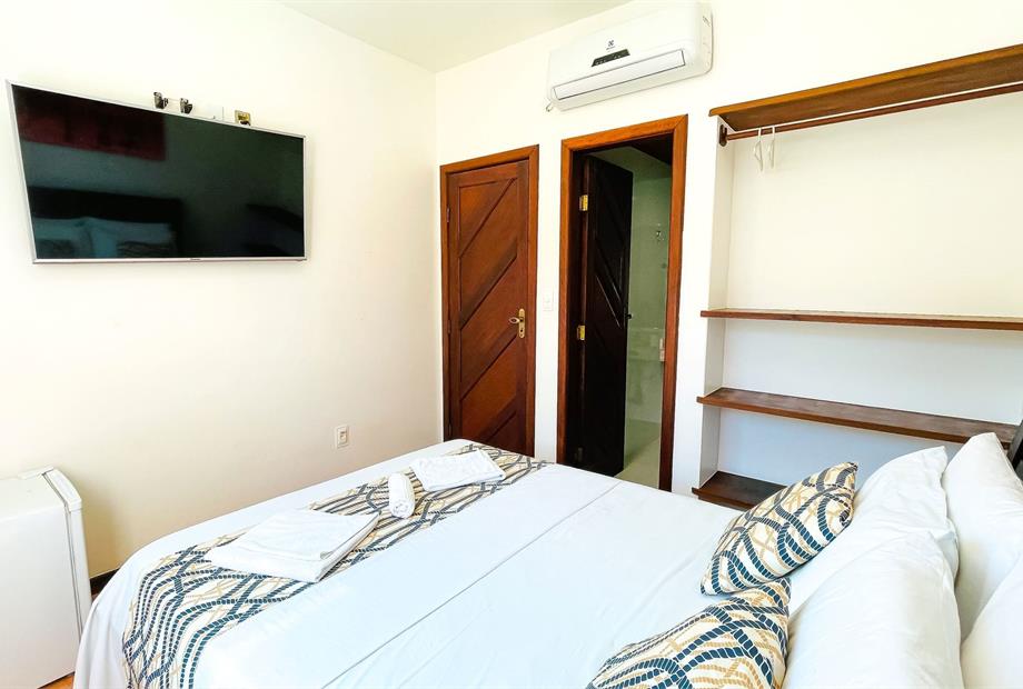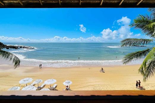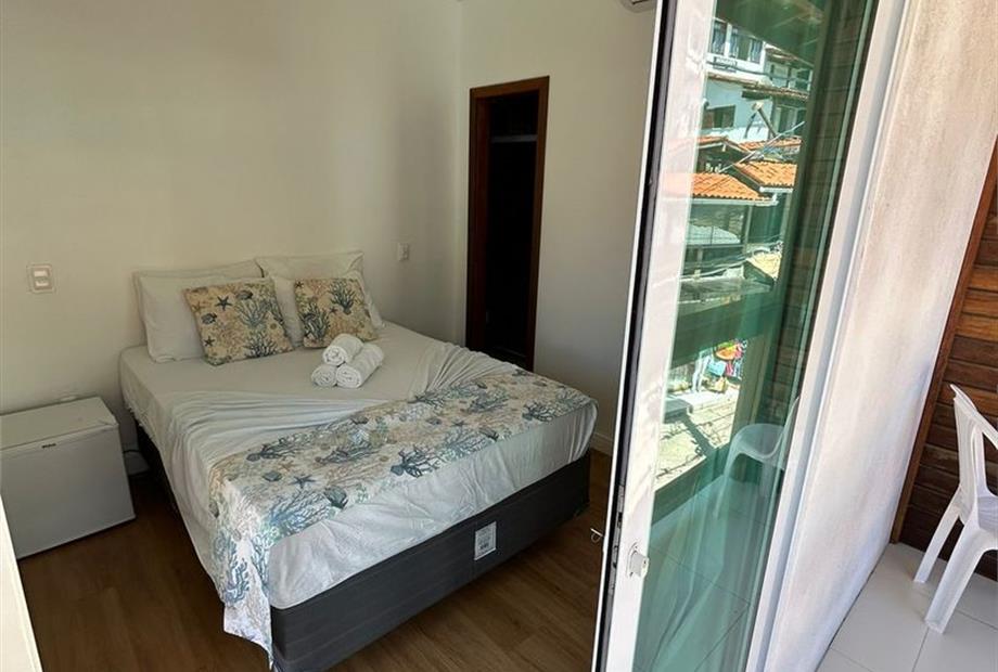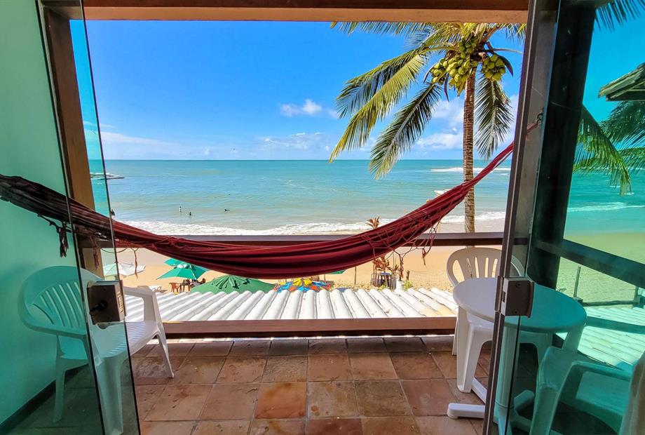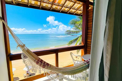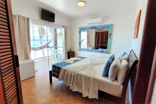 Suíte com varanda de frente para o mar em Morro de São Paulo, acomoda duas pessoas em uma cama queen. Equipado com TV, ar condicionado. O ba...