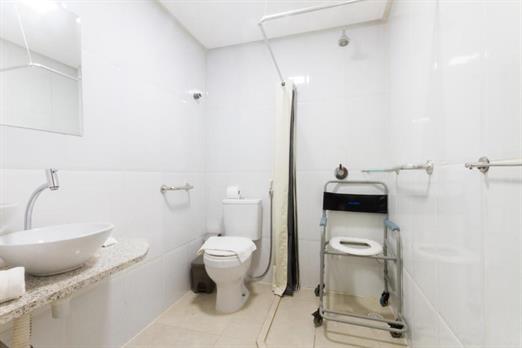 >Barras de apoio pra o chuveiro e vaso sanitário.