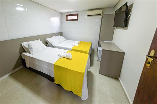 Os Quartos Triplos são do tipo suites com aprox. 17mt2, ficam localizados no térreo na configuração de 1 cama de casal +1 cama de solteirão, são parcialmente adaptados para receber pessoas com necessidades especiais, os quartos são equipamentos com:
