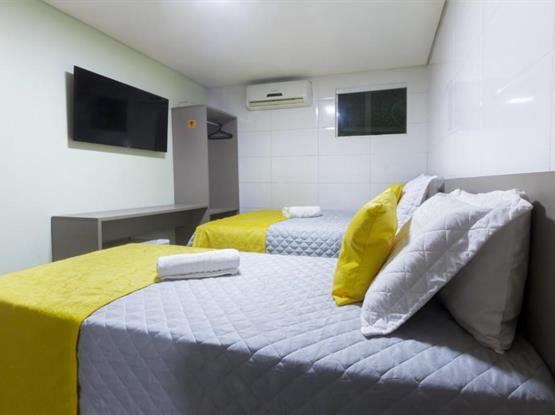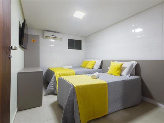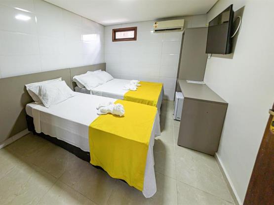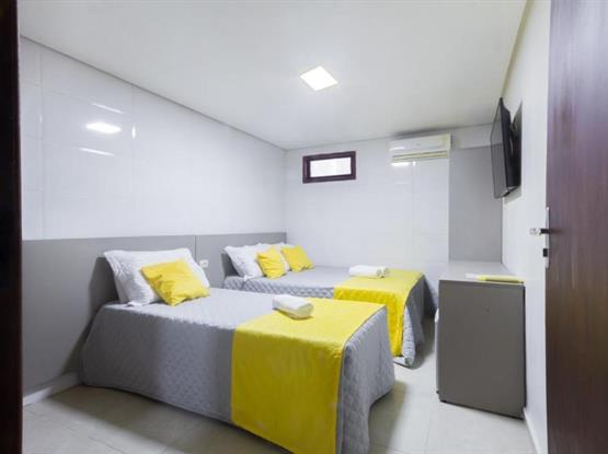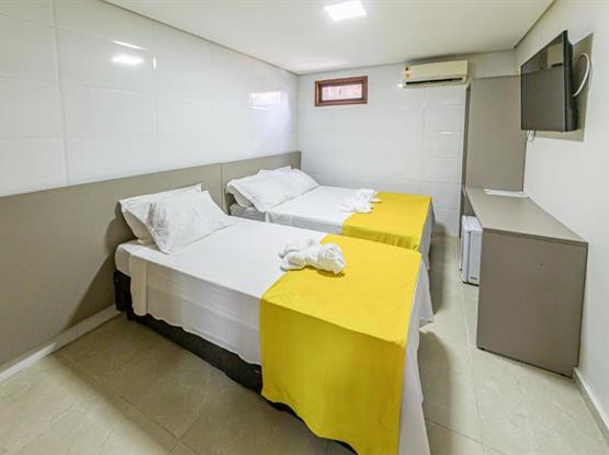 Os Quartos Triplos são do tipo suites com aprox. 17mt2, ficam localizados no térreo na configuração de 1 cama de casal +1 cama de solteirão, são parcialmente adaptados para receber pessoas com necessidades especiais, os quartos são equipamentos com: