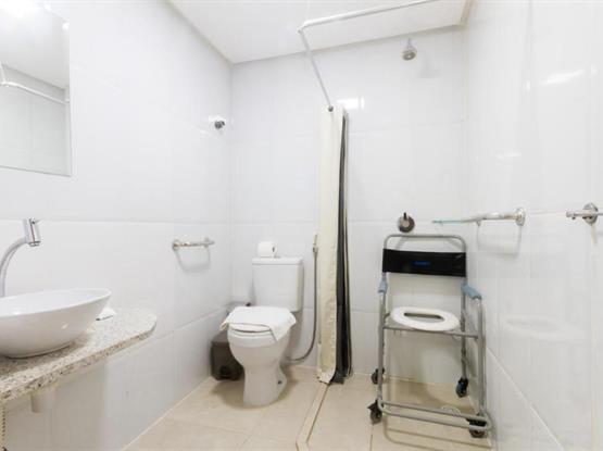 >Barras de apoio pra o chuveiro e vaso sanitário.