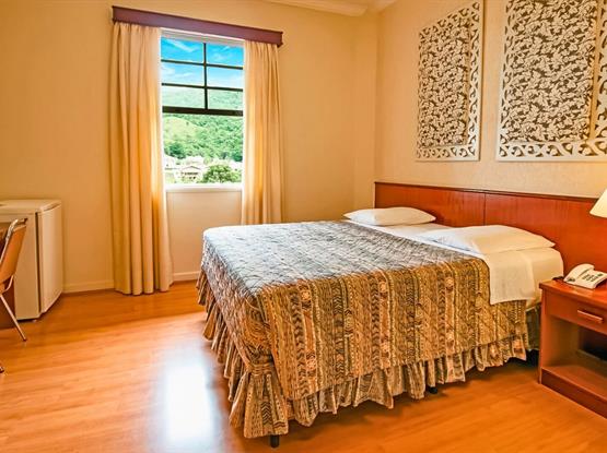 As acomodações, com 25 m², com um quarto e um banheiro foram projetadas para receber até dois hóspedes, garantindo uma estadia confortável e prática. O espaço é equipado com piso laminado de madeira antialérgico, frigobar, ventilador de teto, aquecimento central de água e Wi-Fi gratuito. Para maior comodidade, os quartos oferecem artigos de banho, ducha, secador de cabelo, cama de casal ou solteiro, além de uma televisão com canais a cabo, telefone, cadeira e abajur, assegurando um ambiente perfeito para relaxamento e bem-estar.