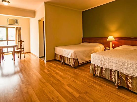 As camas de casal e solteiro, televisão com canais a cabo, abajur e outros detalhes cuidadosamente pensados garantem que sua estadia seja relaxante e agradável. Na Torre 2, você encontra a combinação perfeita de conveniência e conforto em um ambiente acolhedor.