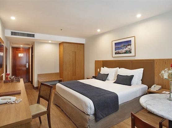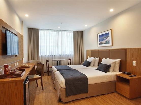 Dois apartamentos da categoria superior integrados com vista lateral mar que comportam até 4 adultos e 2 crianças (até 10 anos como cortesia), ideal para quem viaja com a família, mas quer manter a privacidade. Os ambientes oferecem cama de casal e 2 camas de solteiro, TV a cabo, frigobar, cofre eletrônico e ar condicionado que se desconecta automaticamente quando a janela antirruído é aberta. O local também é ideal para trabalhar, já que possui acesso à internet e bancada de trabalho. O banheiro privativo oferece chuveiro, secador de cabelo e kit de amenities