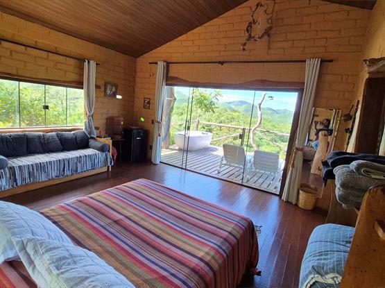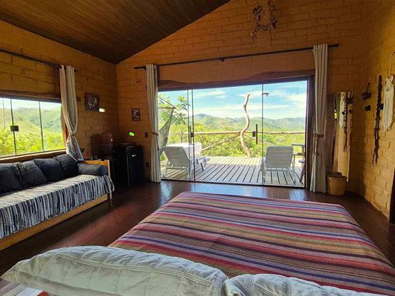A pousada também oferece outras comodidades, como estacionamento privativo gratuito, Wi-Fi gratuito, e todos os chalés com varanda e vista para a montanha
