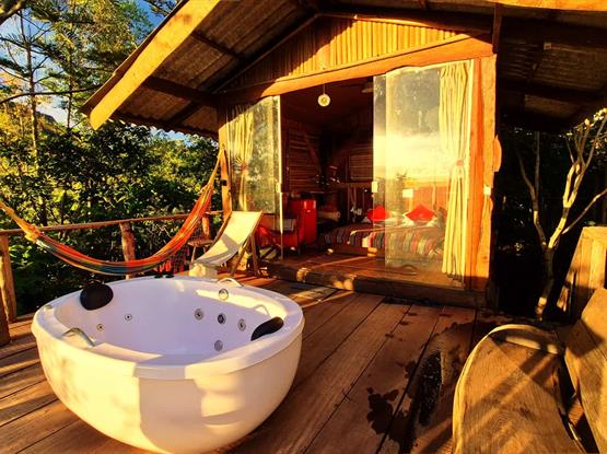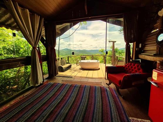 A pousada também oferece outras comodidades, como estacionamento privativo gratuito, Wi-Fi gratuito, e todos os chalés com varanda e vista para a montanha