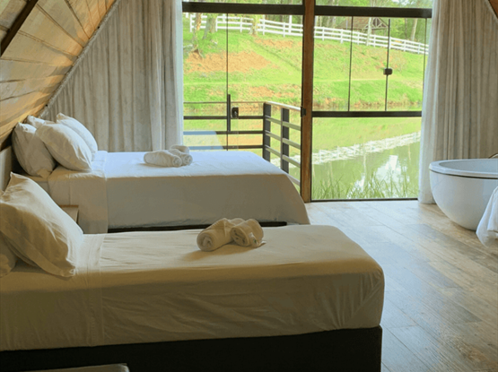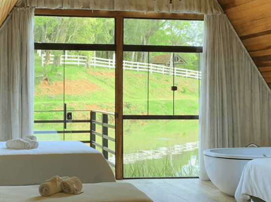 A entrega da chave da suíte na recepção é até as 12h. Porém é permitida a permanência na estrutura do hotel até às 17:30h . Podendo usufruir de toda área de lazer, do almoço e do café da tarde colonial.