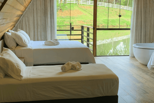Uma acomodação ampla, confortável e aconchegante, perfeita para famílias ou grupos que desejam viver momentos inesquecíveis em contato com a natureza, com vista privilegiada para o lago.