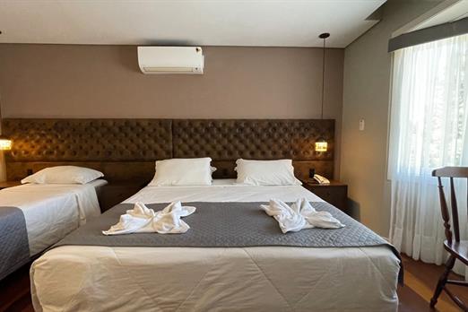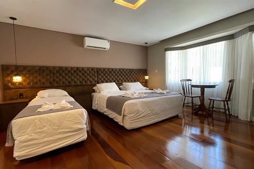 Experimente uma estadia ainda mais confortável em nosso TRIPLO DELUXE , que oferece todos os benefícios do Quarto Standard, mas com um espaço ampliado para você relaxar à vontade. Ideal para casais ou viajantes que apreciam um pouco mais de liberdade, este quarto é