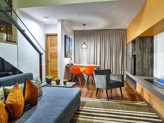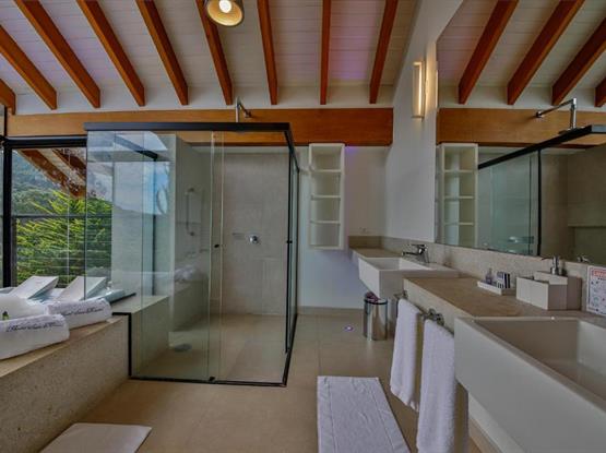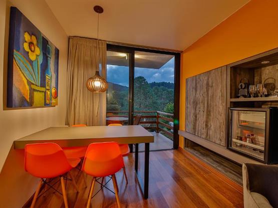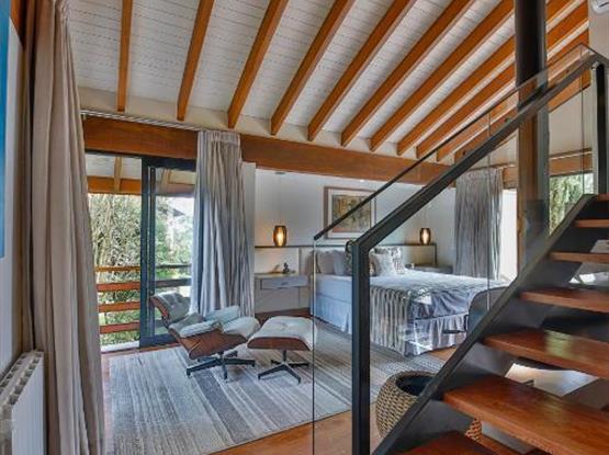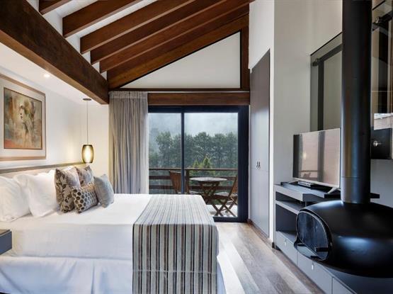 Este chalé possui três pavimentos, sala de estar e refeições, dormitório e sala de banho com banheira de hidromassagem suspensa e com vista para as montanhas, três varandas, duas lareiras, sendo uma no dormitório e outra ecológica na sala, lençol 400 fios, frigobar, roupa de banho em algodão egípcio, máquina de café Nespresso, duas TVs Smart s, calefação independente, kit Amenities L’Occitane e estacionamento privativo e coberto.
