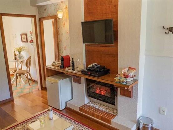 Suítes com visão frontal para a Pedra Azul, todas com ar condicionado Fujitsu. Toscana, São Paulim e D’ouro possuem lareira elétrica e varanda. Mamma Amalfi possui varanda (sem lareira). Todas as Comfort têm a mesma qualidade de todas as demais categorias: banheiro privativo, frigobar, TV, SKY, internet gratuita, cafeteira Nespresso, licor de cortesia, lençóis de algodão egípcio, peças de enxoval...