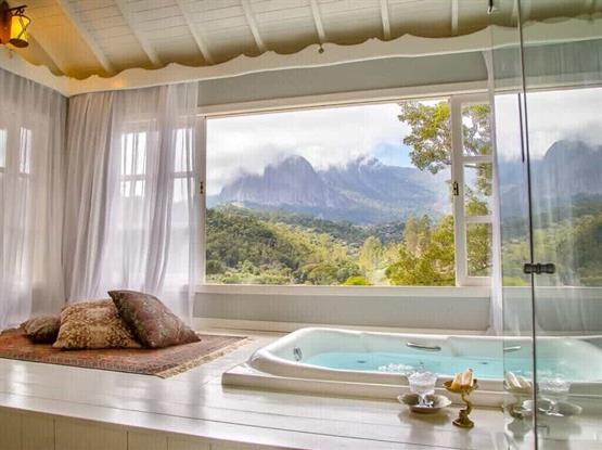 A suíte Premium Maria Antonieta é uma suíte térrea, com cinco cômodos, vista frontal para a Pedra Azul, três aparelhos de SMARTV, SKY, máquina de café Nespresso, ar condicionado Fujitsu no quarto e na sala, licor de cortesia, lençóis de algodão egípcio, peças de enxoval Trousseau, roupões de banho Trousseau, secador de cabelo, sais de banho, shampoo e condicionador, ammenities de marcas variadas i...