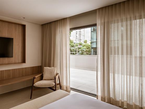 Nossos Studios Garden oferecem uma hospedagem prática e aconchegante, ideais para quem busca conforto com estilo. Cada unidade conta com cozinha equipada com eletrodomésticos e utensílios, frigobar, televisão, banheiro privativo, cama queen com enxoval Trousseau, Wi-Fi e um garden com móveis externos. Localizados no primeiro andar, são perfeitos para estadas curtas ou prolongadas, unindo funcionalidade e bem-estar.