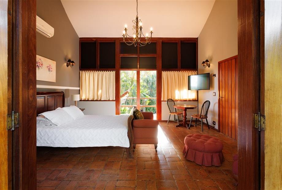 Ideal para o casal que busca silêncio e paz em meio aos jardins da casa sede da fazenda. Ah...Traga o seu pet. *Suíte sem Janela com Vista*