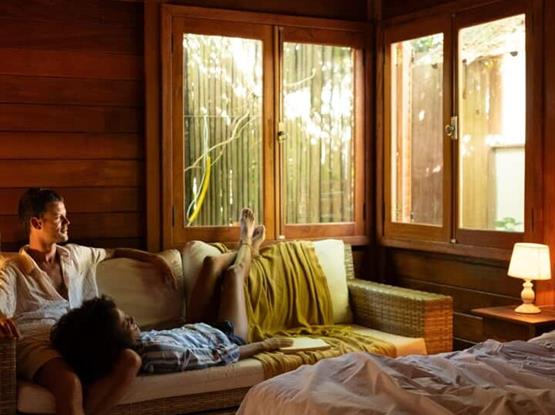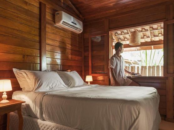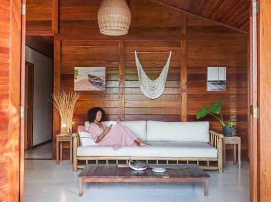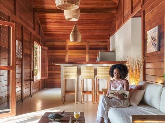 A Cabana do Rio é uma casa de madeira, rústica, localizada dentro da pousada Villa Rio, em um dos pontos mais especiais de Caraíva. A experiência inclui o contato direto com o rio, o silêncio da manhã, o movimento das marés e o pôr do sol visto da varanda — um verdadeiro camarote a céu aberto.