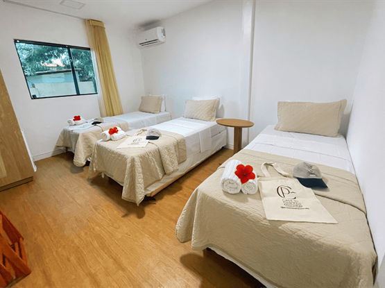 ✔️ Cama de casal + uma de solteiro, ou três camas de solteiro