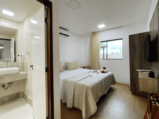 ✔️ Cama de casal ou duas de solteiro para garantir uma boa noite de sono