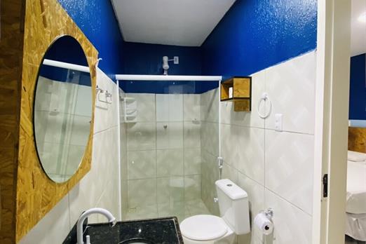 Comodidades: Ar-condicionado, frigobar, Smart TV e armário com cabides.