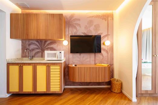 Localizado no térreo, com vista para o garden externo, o Apartamento Superior com Hidro acomoda até quatro pessoas com conforto. Possui cama queen-size (não separável) e sofá-cama para duas pessoas, além de cozinha completa equipada com frigobar, mesa para três lugares, fogão cooktop de uma boca e utensílios de cozinha. A área externa conta com um jardim privativo e banheira estilo jacuzzi com hid...
