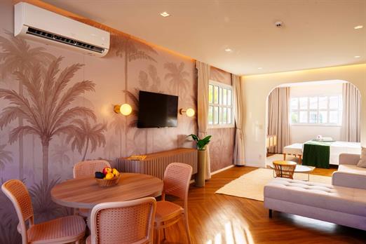 Com vista privilegiada para a piscina, o Apartamento Family com Hidro acomoda até seis pessoas com conforto. Conta com dois quartos, um banheiro e área externa com banheira estilo jacuzzi com hidromassagem. Dispõe de duas camas de casal queen-size (não separáveis), sofá-cama duplo. A cozinha é equipada com frigobar, fogão cooktop de uma boca, mesa com três cadeiras e utensílios completos. O aparta...