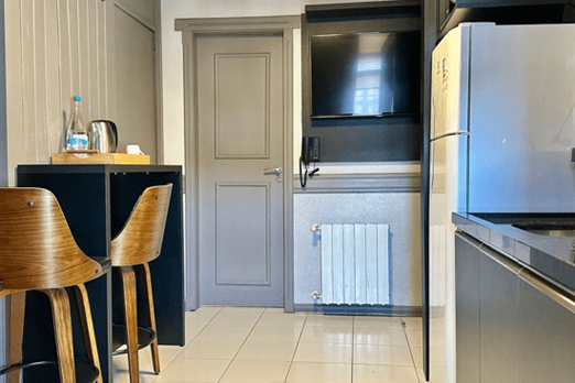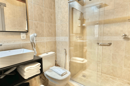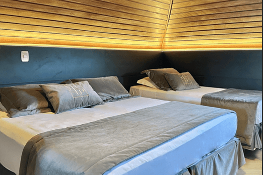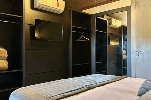 A Suíte Luxo Duplo é uma acomodação aconchegante e funcional que recebe até duas pessoas com todo o conforto necessário para uma estadia memorável. O espaço conta com cama queen size, Smart TV, frigobar, calefação e ar-condicionado, além de um quarto acolhedor integrado a uma sala com cozinha completa, ideal para preparar refeições com praticidade e aproveitar momentos de convivência. O banheiro privativo dispõe de chuveiro, secador de cabelo e um kit completo de amenities, garantindo ainda mais comodidade.