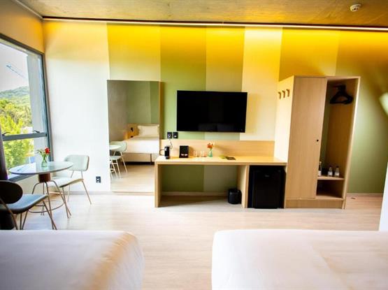 O cliente efetua a compra e pode cancelar em até 24h antes da data do seu check-in (entrada). O Hotel reserva o direito de fazer uma pré-autorização (bloqueio do valor no cartão de crédito) referente ao valor da primeira diária. A cobrança será realizada no check-in (entrada).