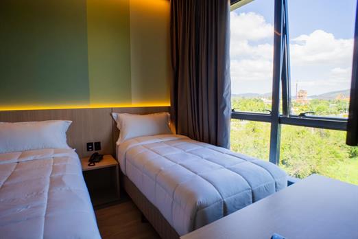 Desfrute de uma estadia confortável e moderna no nosso Quarto Luxo Twin, perfeito para quem busca um ambiente sofisticado e acolhedor. Equipado com duas camas de solteiro, o quarto acomoda até 2 pessoas (adultos ou crianças), oferecendo o espaço ideal para amigos ou casais que preferem camas separadas.
