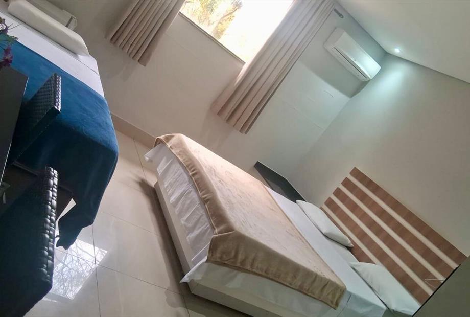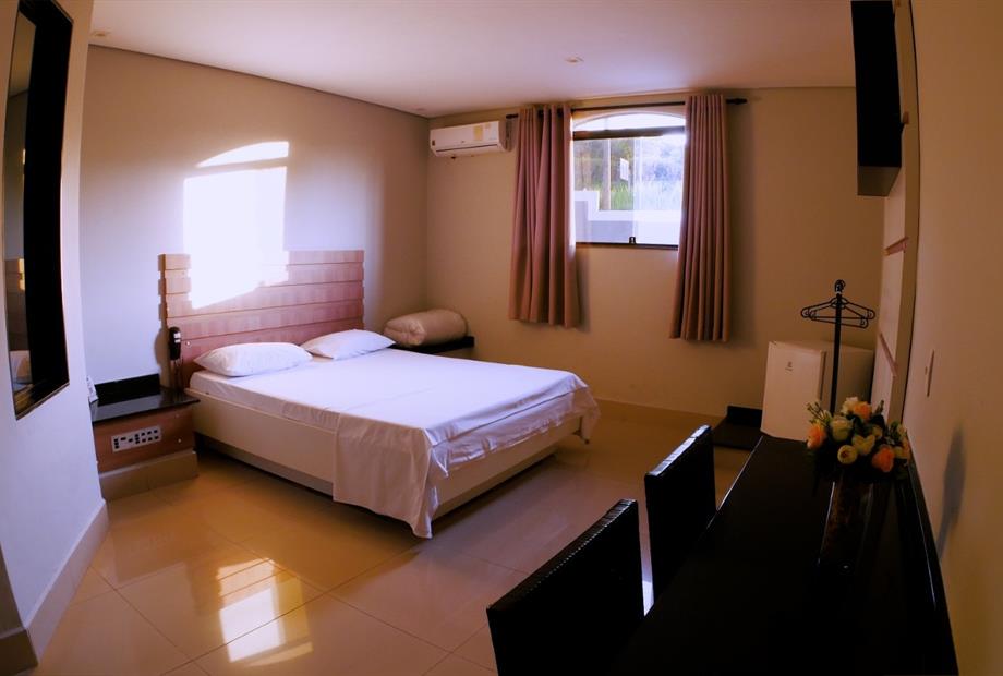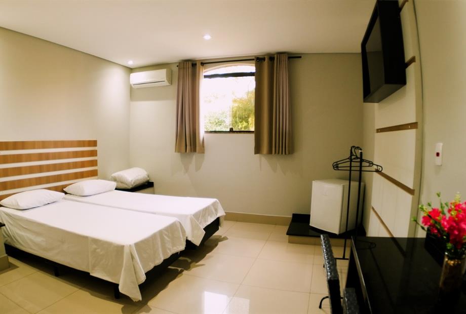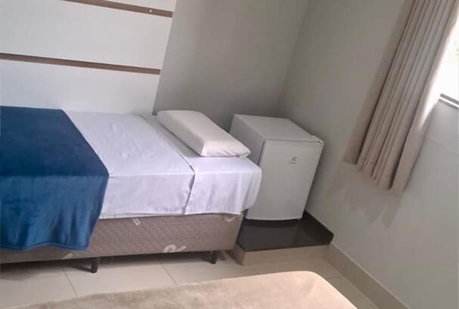 Apartamento compõe ar-condicionado, frigobar, banheiro privativo e Tv de tela plana.