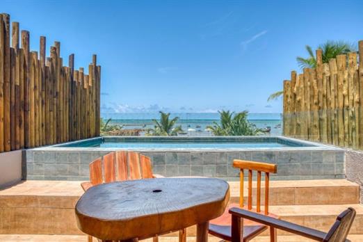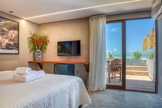 Um refúgio exclusivo diante do paraíso! A Suíte com Piscina Vista Mar oferece o privilégio de ter uma piscina privativa com uma vista deslumbrante do mar de Milagres.
