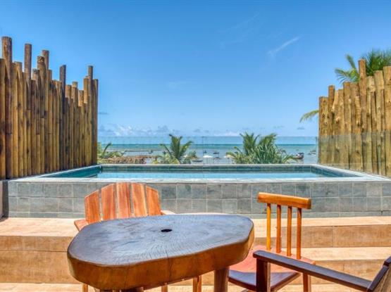 Um refúgio exclusivo diante do paraíso! A Suíte com Piscina Vista Mar oferece o privilégio de ter uma piscina privativa com uma vista deslumbrante do mar de Milagres.