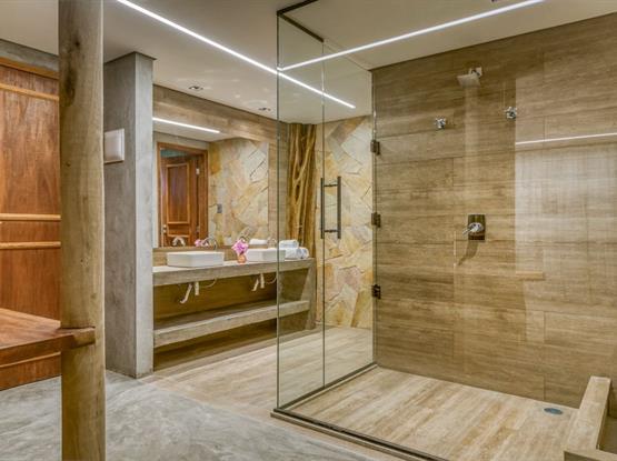 Com cama queen size, enxoval premium, design sofisticado e varanda integrada ao ambiente externo, cada detalhe foi pensado para proporcionar conforto e privacidade. O banheiro amplo, com acabamentos elegantes, complementa a experiência de luxo e bem-estar.