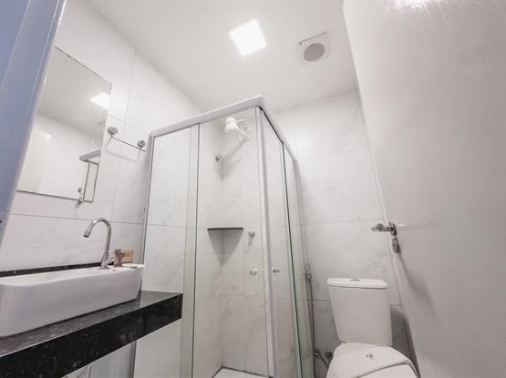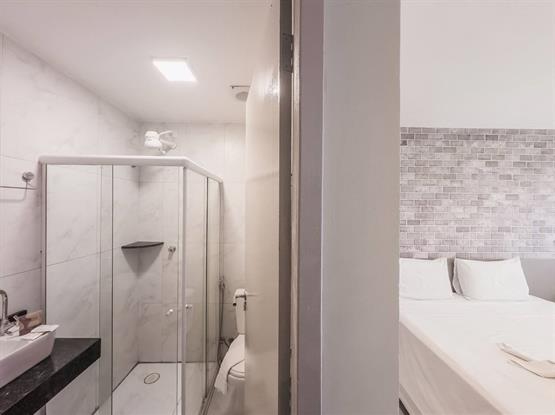 - Banheiro privativo, equipado com chuveiro e itens de higiene de cortesia.