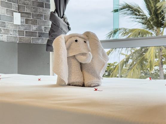 - 1 cama de casal grande, com enxoval macio e colchão superconfortável.