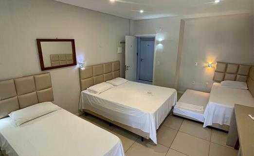 Comodidades do quarto: Cama de casal + 2 camas de solteiro +1 cxama adicinal(cama baixa no chão) Ar-condicionado split TV de tela plana Frigobar Mesa de apoio com banquetas Armário aberto com prateleiras e cabideiro Banheiro privativo Wi-Fi gratuito Ideal para 4 pessoas, podendo acomodar até 5 na cama extra Ambiente monitorado por câmeras Recepção física das 7h as 22h e Plantão noturno das 22 ás 7h - Esta unidade possui espaço aberto em frente que pode ser utilizado para estacionar o carro. Caso prefira, Temos convênio com estacionamento que fica a 500m da hospedagem na Av. Alfredo Brunetti, 970 – Vc pode adquirir de f...