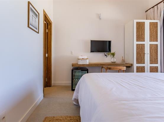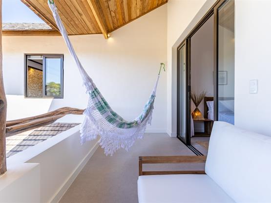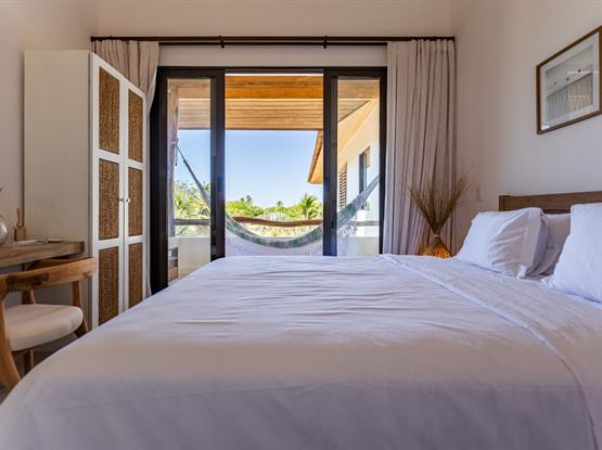 Localizada no piso superior da propriedade, a Suíte Hibisco, com 18 m², foi projetada para oferecer uma combinação perfeita de conforto e elegância. Com uma vista panorâmica das Dunas do Parque Nacional, a suíte proporciona uma experiência única com ampla varanda externa, equipada com uma rede aconchegante, é o convite ideal para momentos de pura tranquilidade. Com decoração sofisticada e ambiente acolhedor, esta suíte foi pensada para garantir uma estadia inesquecível.