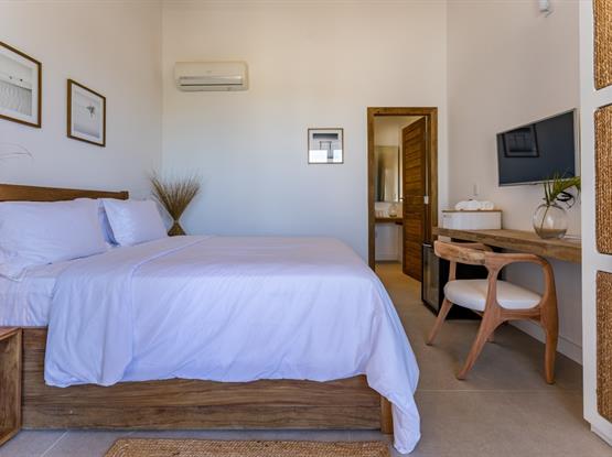 Localizada no piso superior da propriedade, a Suíte Hibisco, com 18 m², foi projetada para oferecer uma combinação perfeita de conforto e elegância. Com uma vista panorâmica das Dunas do Parque Nacional, a suíte proporciona uma experiência única com ampla varanda externa, equipada com uma rede aconchegante, é o convite ideal para momentos de pura tranquilidade. Com decoração sofisticada e ambiente...