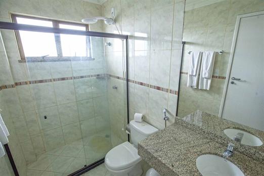 Este quarto possui cama casal queen size. Além de: ar condicionado split, mesa de trabalho, acesso gratuito a internet WIFI, frigobar, banheiro privativo com chuveiro elétrico, TV LCD 32" contendo canais de TV por assinatura e serviço de room service até às 21h.