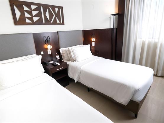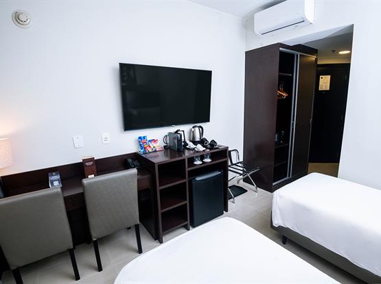 Os quartos Super Luxo, com 18m², estão localizados no 14º andar e possuem piso frio. Oferecemos chaleira e cafeteira com 2 cápsulas Nespresso cortesia, Smart TV com canais a cabo e uma garrafa de água cortesia por estadia. Além disso, disponibilizamos uma linha completa de amenities, balança, secador de cabelos profissional, mesa de trabalho e enxoval diferenciado. Para o seu conforto, apresentamo...