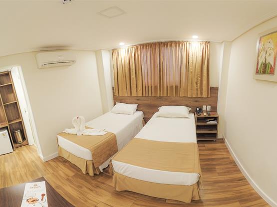 Apartamento Duplo Twin com 2 camas de solteiro (Gratuidade de 01 criança de até 04 anos no mesmo apartamento de 02 pagantes, dormindo na cama com os pais em camas já existentes no apartamento)