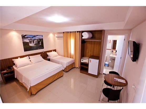 Todos os apartamentos do Del Rey Quality Hotel são equipados com fechaduras eletrônicas, cofre digital, ar condicionado, secadores de cabelo, TV a cabo, frigobar, acesso gratuito à internet, telefone e mesa de trabalho. Reservando diretamente com o hotel você ganha transfer de chegada aeroporto Foz para o hotel precisa ser agendado até 48 hrs antes pelo telefone 045 2105 7509 com Loumar Turismo (se vier de avião)Cobramos taxa de Serviço de 10%, revertido aos colaboradores e taxa de turismo de R$ 3,00 por pessoa por dia.