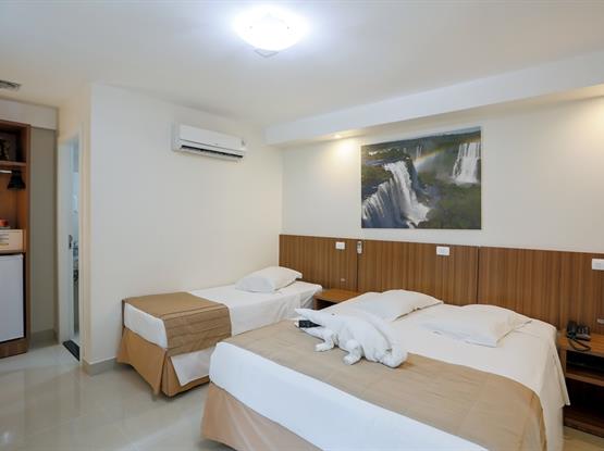 Apartamento Triplo Casal com 1 cama de casal + 1 cama de solteiro (Gratuidade de 01 criança de até 04 anos no mesmo apartamento de 03 pagantes, dormindo na cama com os pais em camas já existentes no apartamento)