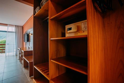 As suítes possuem mobiliário e enxoval diferenciados, cuidadosamente escolhidos para proporcionar uma experiência de alta qualidade. Todas oferecem uma vista deslumbrante para as montanhas e contam com sacadas privativas.