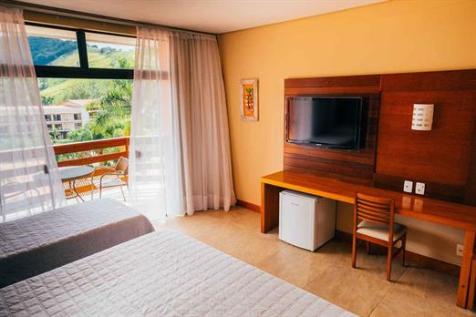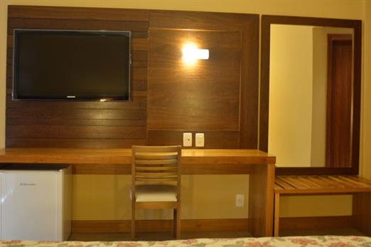 Para quem precisa trabalhar, há uma bancada equipada com internet via cabo. Os banheiros são completos, com secador de cabelos, espelho de aumento, varal interno e box de vidro temperado. Além disso, as suítes contam com telefone e Wi-Fi gratuito para garantir conectividade e comunicação.