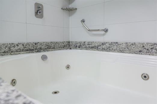 Luxo, sofisticação, um lugar onde você pode relaxar e recarregar suas energias são palavras que descrevem bem essa suíte. As cores neutras, acabamentos em mármore, e generoso espelho completam a decoração deste quarto rico em detalhes.