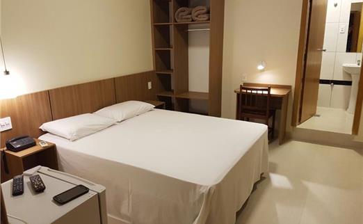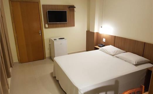 Tv tela plana led 32p, canais a cabo, guarda roupa, escrivaninha, telefone, ar condicionado, banheiro privativo, frigobar, wifi.