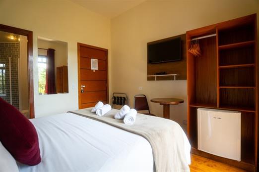 Os apartamentos possuem vista para a Natureza da Pousada, estão localizados no nível térreo (abaixo do andar da recepção), acesso por 1 escada. Possuem cama box, lençóis 100% algodão (190 fios), SMART TV LG 32' com canais Sky, frigobar, telefone, revestimento térmico e aquecedor, armários, cortina blackout, WIFI, piso laminado antialérgico, chuveiros pressurizados, ducha higiênica, secador de cabelo, serviço de arrumação todos os dias e recepção 24 horas. Com café da manhã servido das 8h às 11h