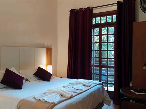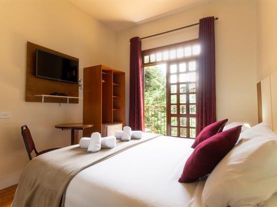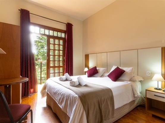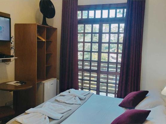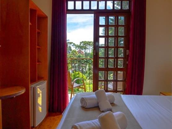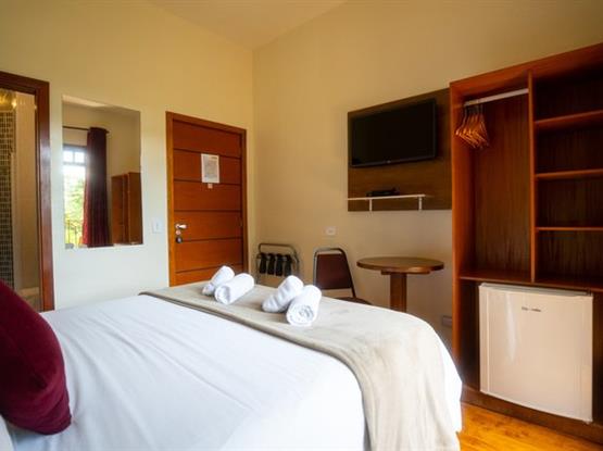 Os apartamentos possuem vista para a Natureza da Pousada, estão localizados no nível térreo (abaixo do andar da recepção), acesso por 1 escada. Possuem cama box, lençóis 100% algodão (190 fios), SMART TV LG 32' com canais Sky, frigobar, telefone, revestimento térmico e aquecedor, armários, cortina blackout, WIFI, piso laminado antialérgico, chuveiros pressurizados, ducha higiênica, secador de cabelo, serviço de arrumação todos os dias e recepção 24 horas. Com café da manhã servido das 8h às 11h