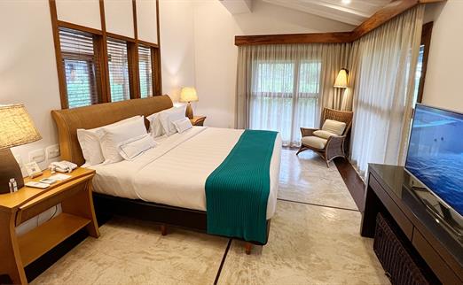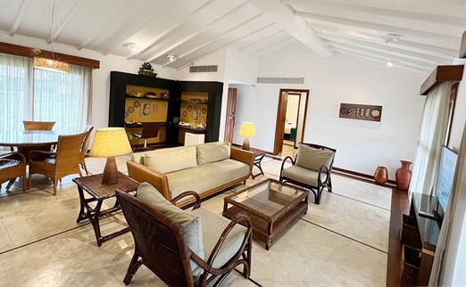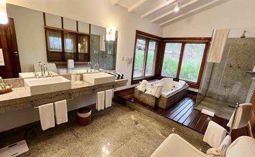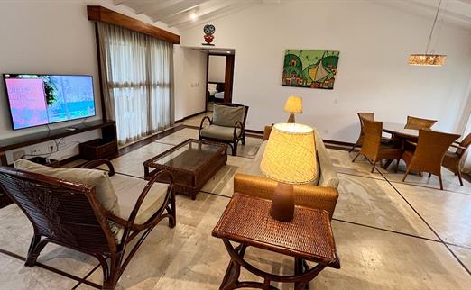 Acomodam até 6 adultos ou 4 adultos + 2 crianças até 11 anos; 1 cama de casal (king size) + 4 camas de solteiro (full size). Serviços exclusivos: Cafeteiras Nespresso com cápsulas de café; Frigobar com cerveja premium e snacks; Frutas com reposição diária, mediante disponibilidade (disque ramal 9); Roupão e Pantufas para adultos; Amenities Premium; Early Check in e late check out estendido, mediante disponibilidade; Desconto de 15% em atividades na Náutica, Spa e Locação de Bicicleta; Upgrade de transfer regular para privativo; 1 massagem de 25' por adulto por hospedagem; 1 almoço a la carte por hospedagem no restaurante da praia;...