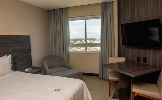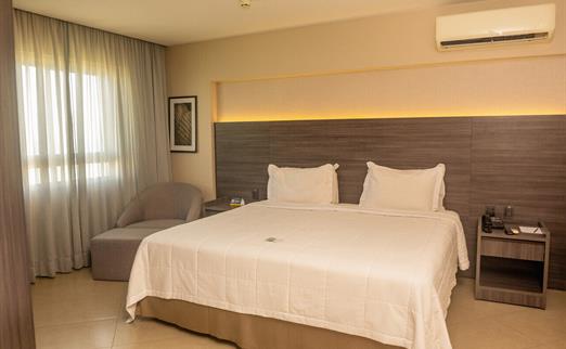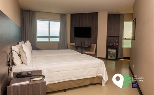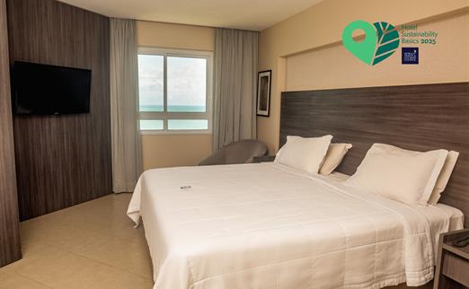 Espaçoso e climatizado, este quarto tem vista ampla para a praia de Ponta Negra. Está equipado com frigobar, mesa de trabalho e TV 40” LED com canais a cabo (NET). O banheiro privativo inclui chuveiro com sistema de monocomando, aparelho de telefone e secador de cabelo. O acesso à internet é pelo sistema Wi-Fi. Comodidades dos quartos: Vista ampla, Telefone, Cofre para laptop, Ar-condicionado, Mesa de trabalho, Guarda-roupa/armário, Chuveiro, Secador de cabelo, Banheiro, Frigobar, mesas de cabeceira e poltronas com pufe. WiFi está disponível gratuitamente em todos os quartos. Beneficios: Duas águas minerais s/ gás de boas vindas e 1...