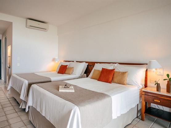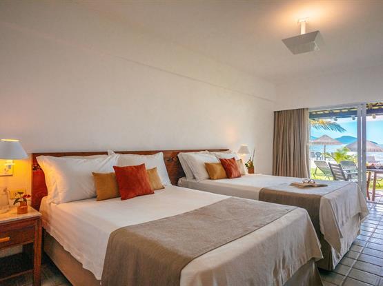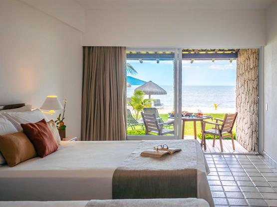 Desfrute da experiência única de ter acesso direto a praia pela varanda do apartamento. Todos os beach rooms possuem frigobar, Smart TV, ar condicionado, secador e cofre.